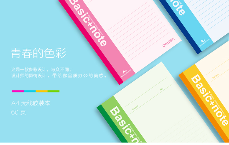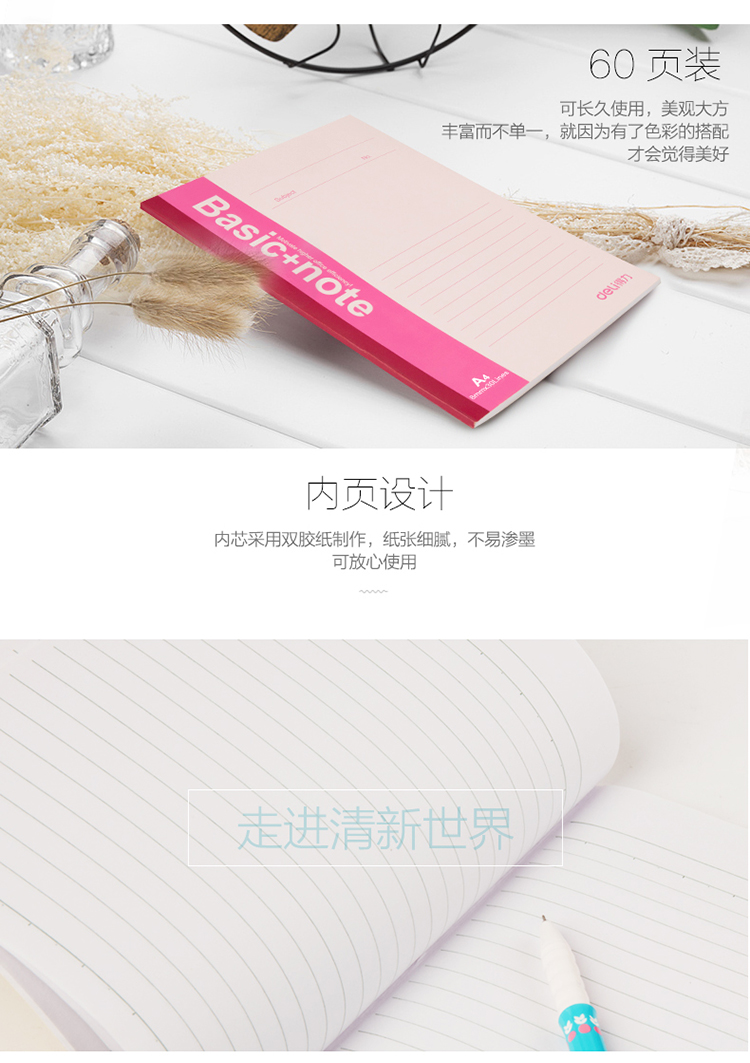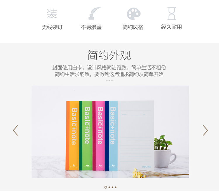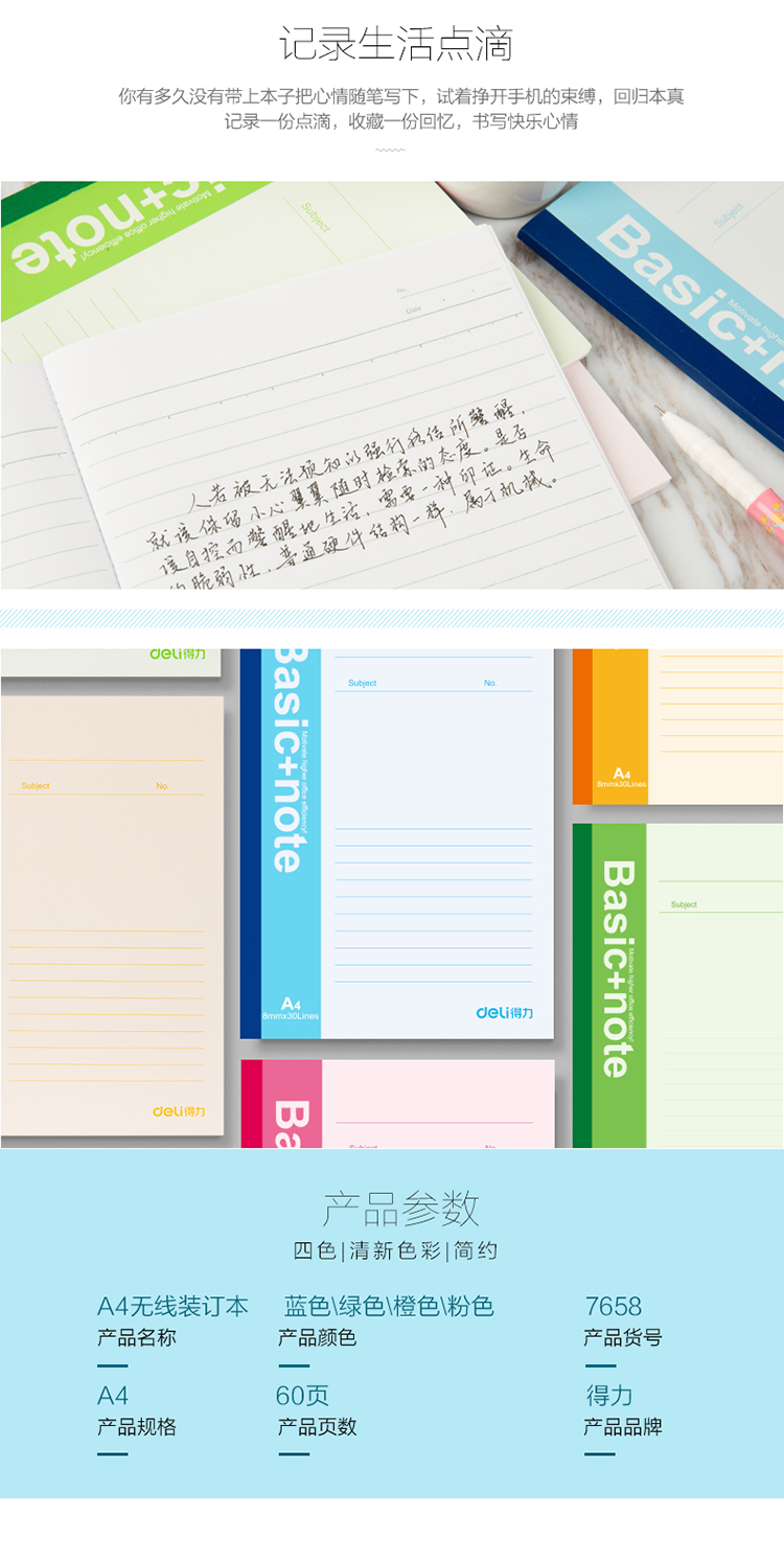 得力7658记事本笔记本文具A460页笔记本软抄办公书写本办公 自营